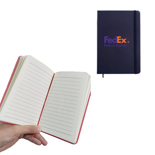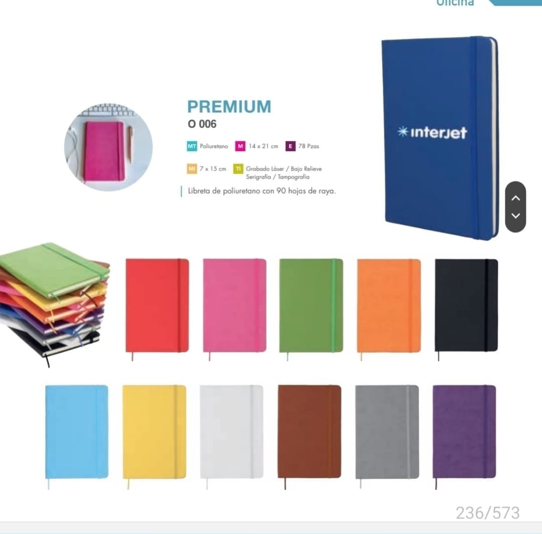Tamaño media carta con pasta de poliuretano y 90 hojas rayadas, son excelente opción para regalos corporativos.